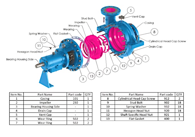 Radially split volute casing, Horizontal installation, Back pull-out design, Single stage, Single flow, Centerline supported pump casing, to API 610, 11th/ISO 13709, 2009